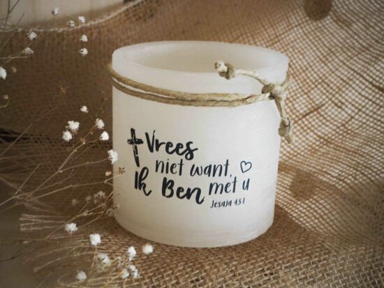 Windlicht S “Vrees niet want Ik ben met u” Ivoor