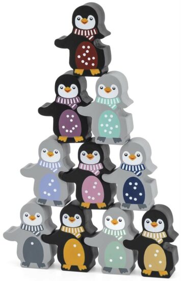 Geboortepuzzel Pinguin met jong Blauw (van 100% FSC hout)