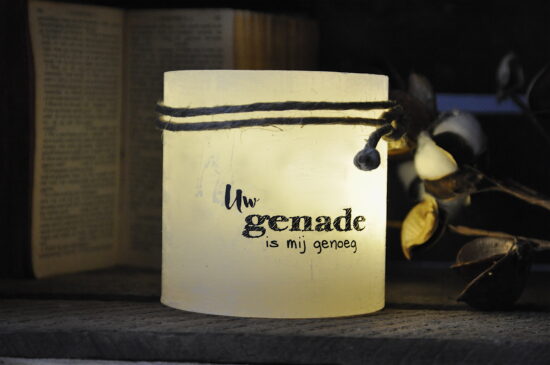 Windlicht S ‘Uw genade is mij genoeg’, Ivoor