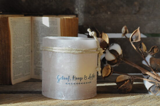 Windlicht S ‘Geloof, hoop & Liefde’, Taupe