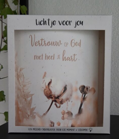 Windlicht S – Vertrouw op de Heer met heel je hart – Ivoor
