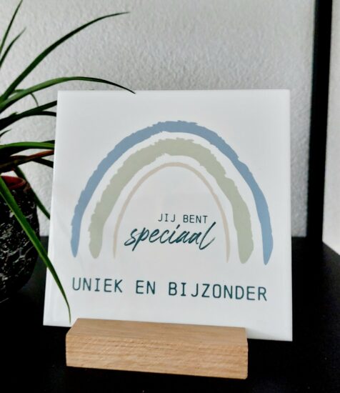 Ontdek onze prachtige geprinte tegeltjes met houder, gevuld met inspirerende en liefdevolle teksten die je hart verwarmen.