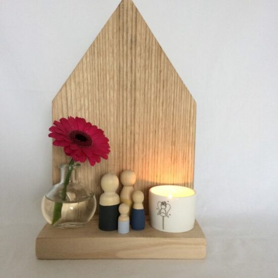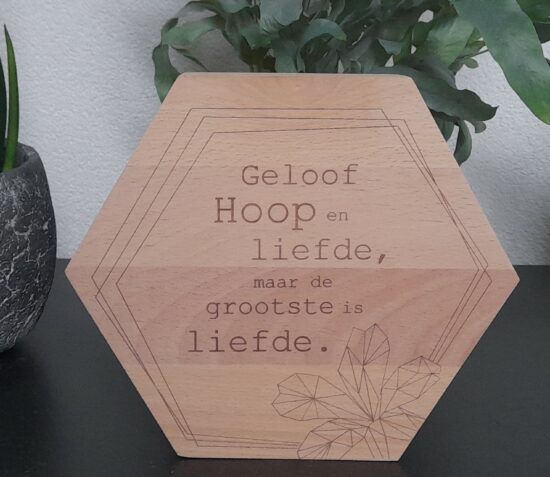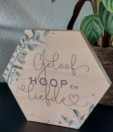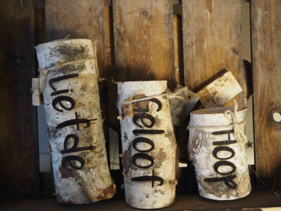 Boomschijf met waxinelichtje – Geloof, hoop en liefde