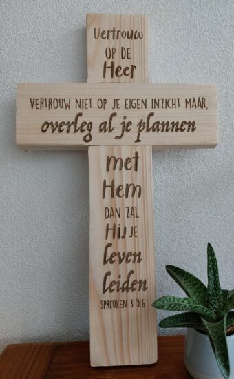 Houten Kruis Vertrouw op de Heer M Blank