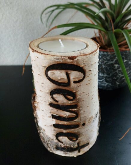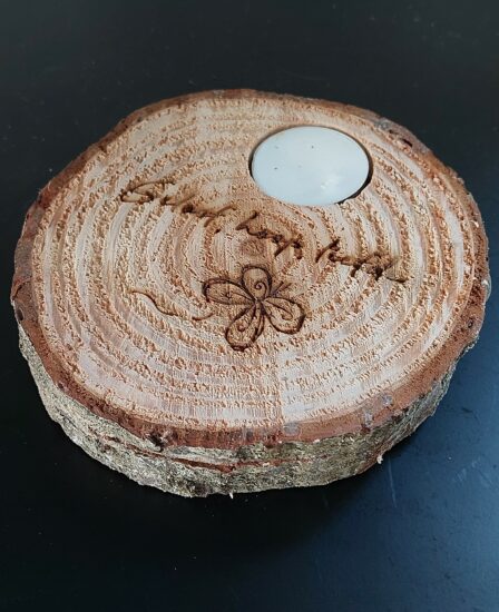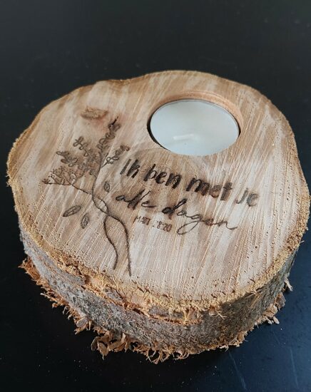Boomschijf met waxinelichtje – Ik ben met je..