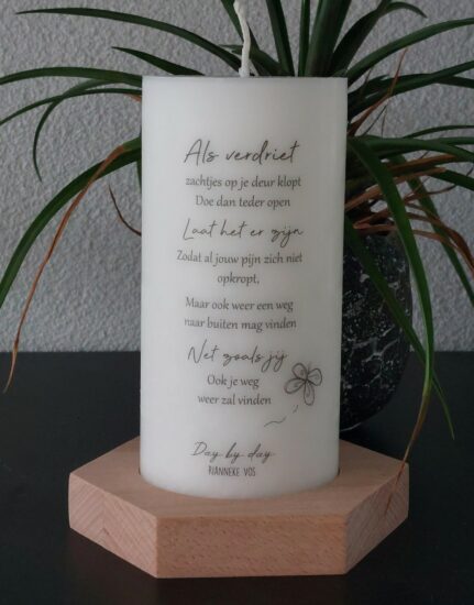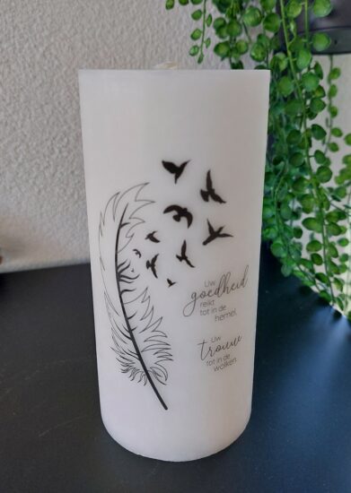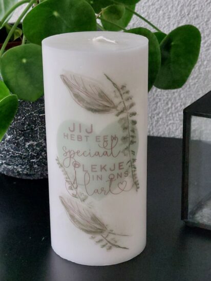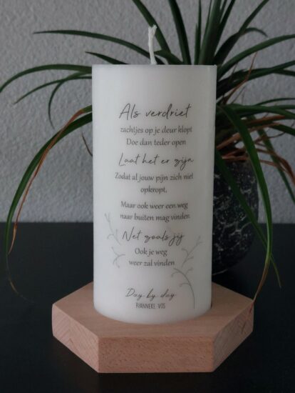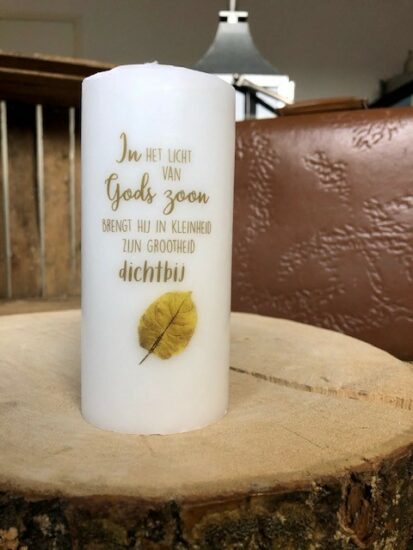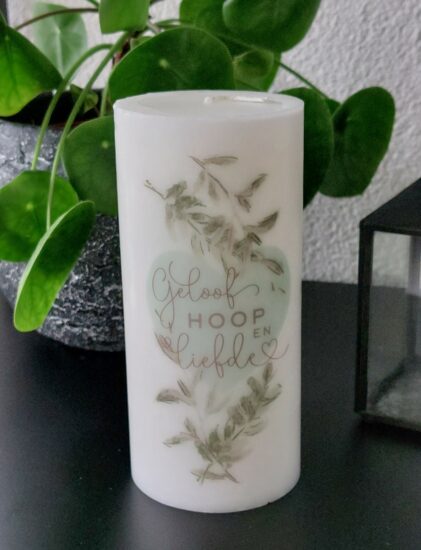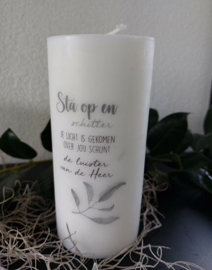 Al met al zijn deze prachtige kaarsen niet alleen een mooi product om cadeau te doen of jezelf mee te verwennen, maar ook een manier om anderen te inspireren of te bemoedigen. Het warme licht zal zeker bijdragen aan het creëren van een gezellige sfeer in huis en zal voor de ontvanger een lichtpuntje zijn!