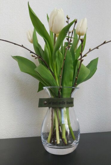 Hoge Vaas met leren band: Geloof, hoop en heel veel liefde