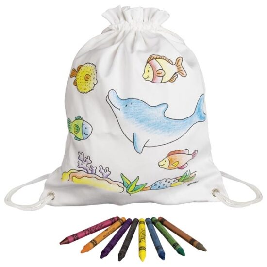 Katoenen rugzak met zeedieren om zelf te kleuren (incl. krijtjes)