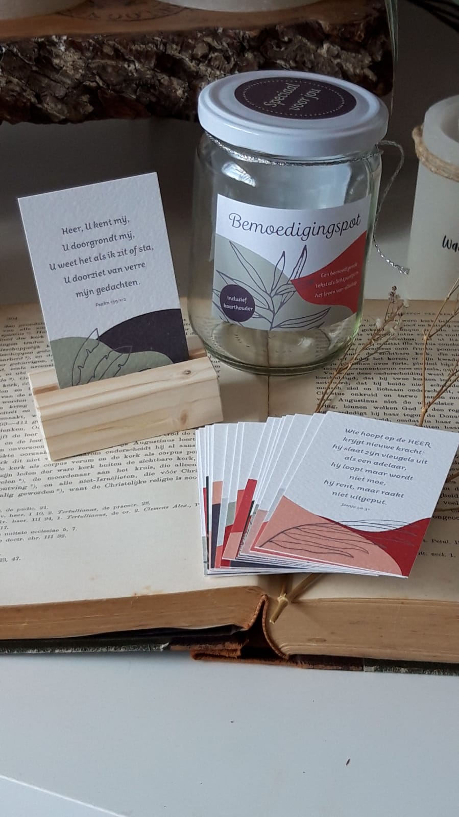 Kaartjes met bemoedigende teksten als lichtpuntjes in het dagelijkse leven, incl. kaarthouder. Dit product is tot stand gekomen door mensen met een achterstand op de arbeidsmarkt. “Gemaakt met een Hart”