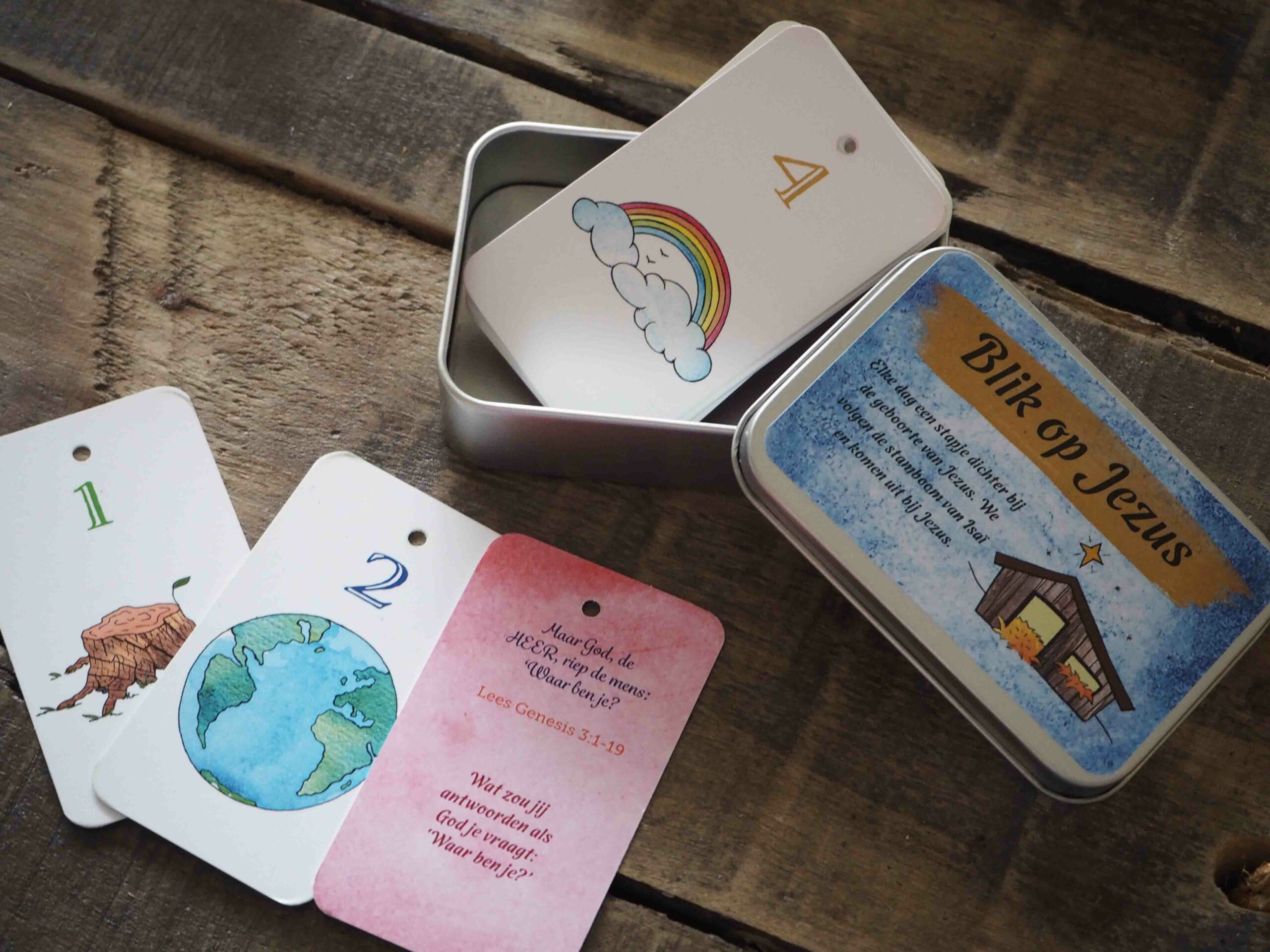 Zoek een paar mooie takken, hang er elke dag een kaartje aan. Zo komt de boom van Isaï tot leven. We volgen de stamboom van Isaï tot aan de geboorte van Jezus. Door symbolen en teksten uit de Bijbel (NBV) komen we elke dag een stukje dichter bij de geboorte van Jezus. Ook leuk om te doen met kinderen.