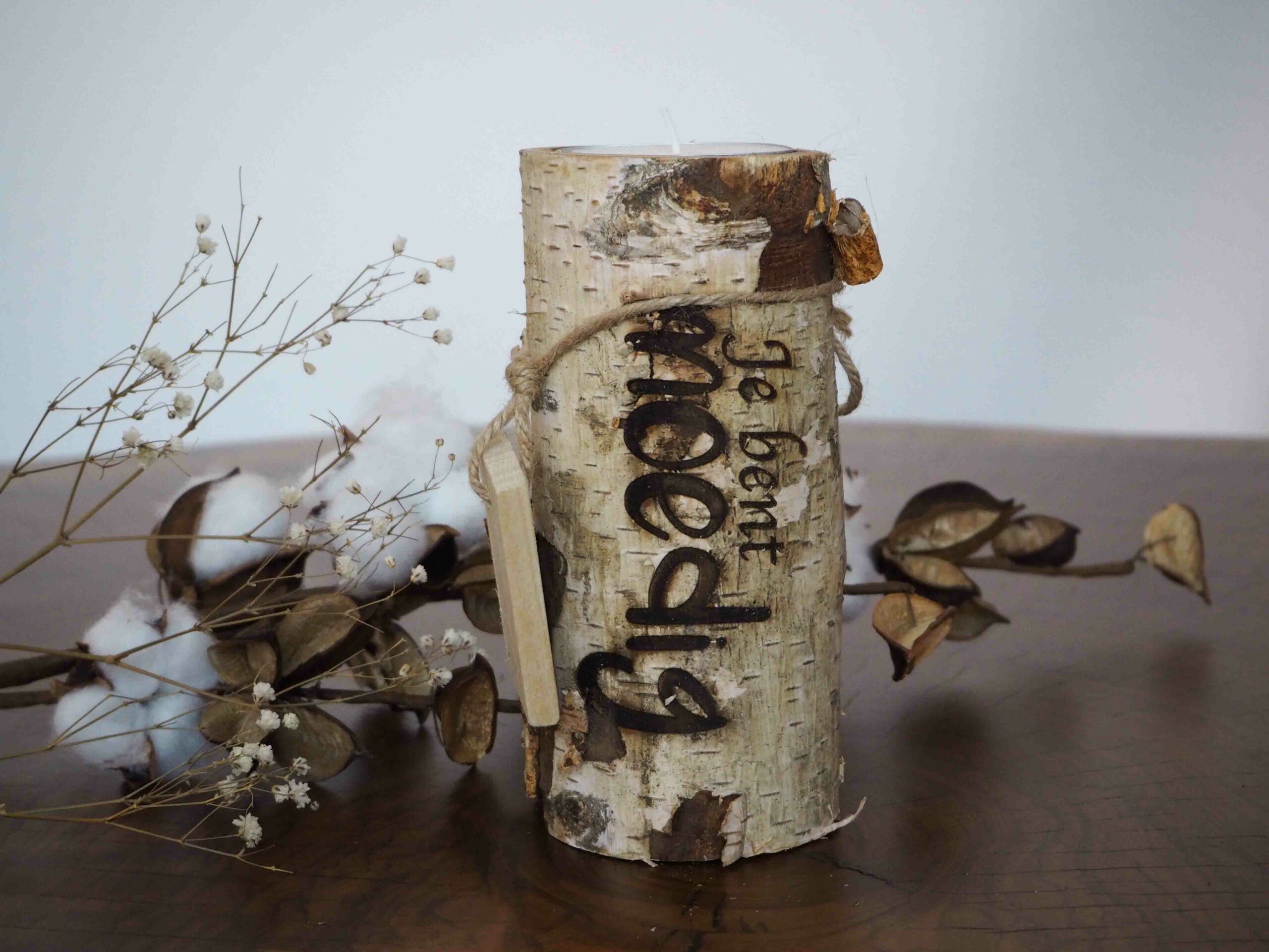 Boomstam L met gravure Je bent moedig – met kaars (vervangbaar)