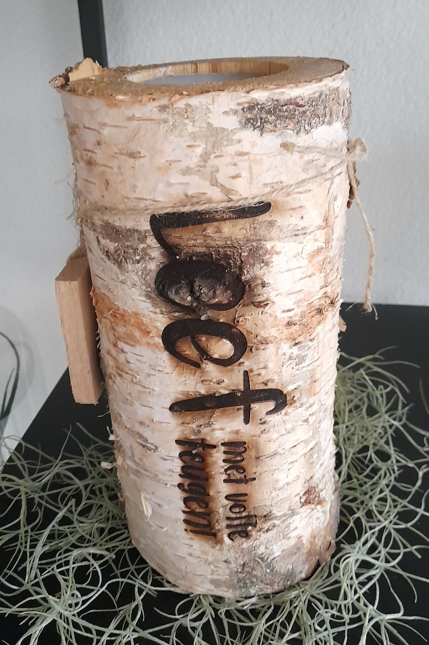 Boomstam L met gravure Leef met volle teugen – met kaars (vervangbaar)