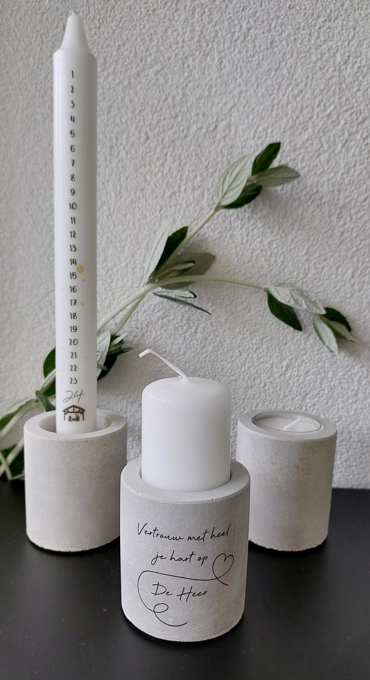 Kaarsenstandaard rustiek – Vertrouw met heel je hart…(incl. mini stompkaars)