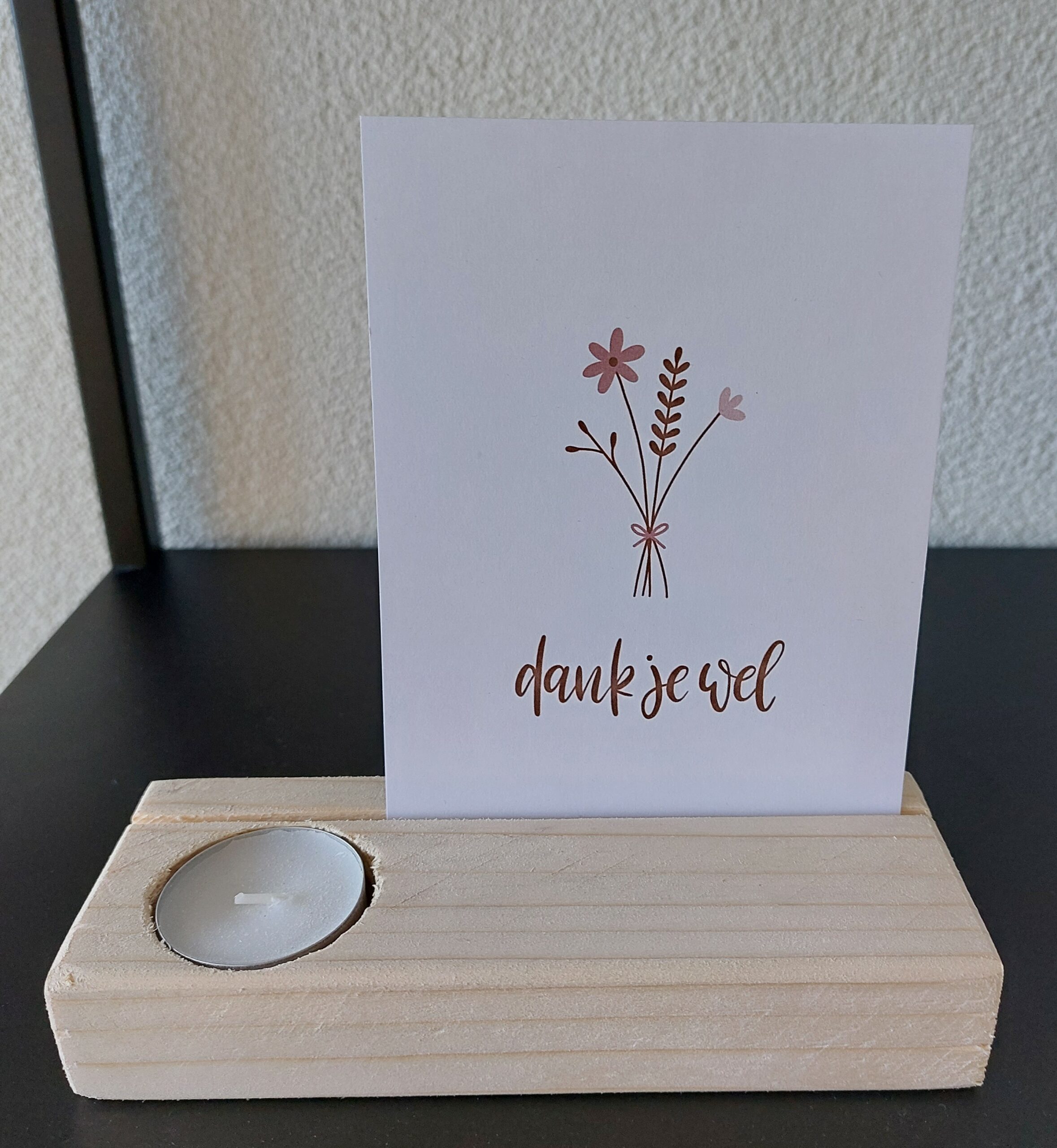 Kaathouder van 16 cm met waxinelichtje. Let op! Deze houder wordt geleverd inclusief waxinelichtje, exclusief kaart.
