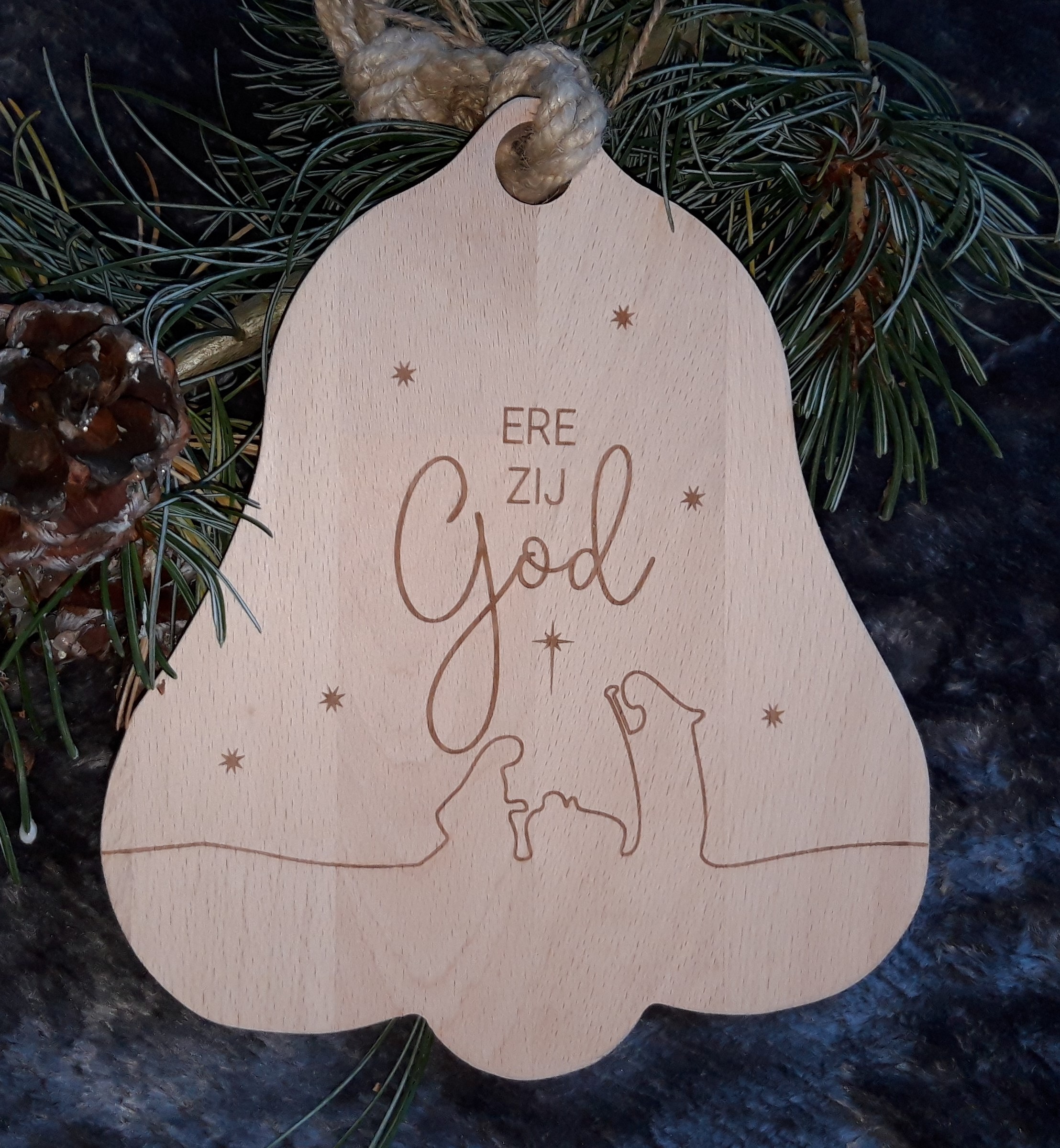 Houten kerkklok met tekst Ere zij God. Handgemaakt door mensen die begeleid worden in onze samenleving. Incl. robuust touw. Gemaakt met een Hart.