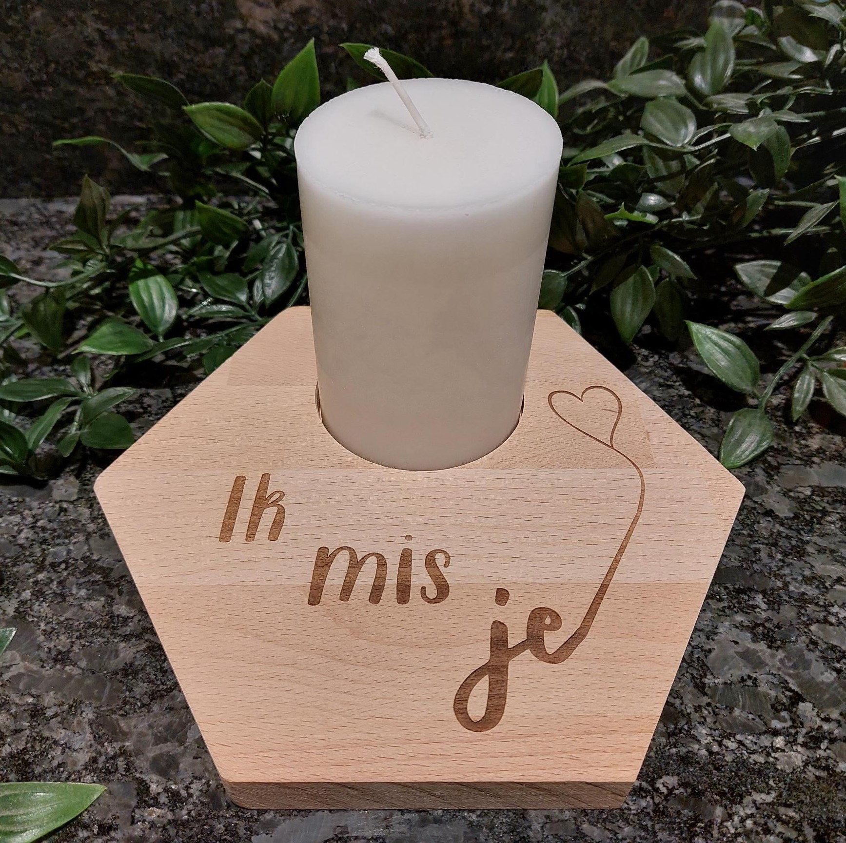Nordic stompkaarshouder Ik mis je, incl. kaars