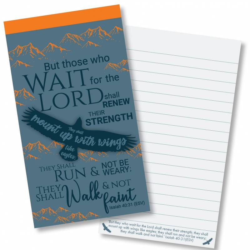 Notitieboekje met gelamineerde cover. Binnenzijde lijntjes incl. tekst Ps.27:20