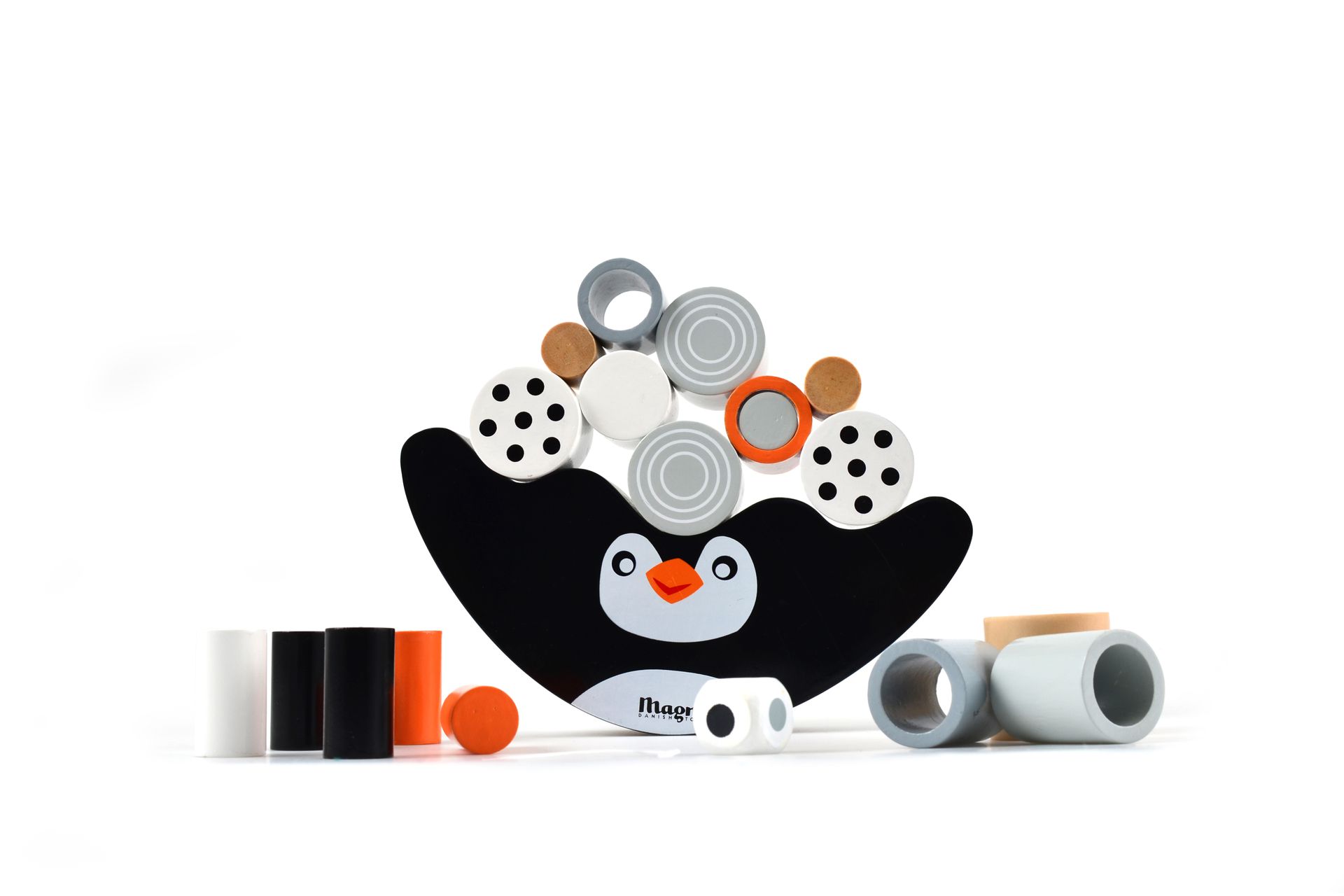 Houd de pinguin in balans! Stapel alle ronde vormen op de nek van de pinguin – maar omvallen mag niet! Goed voor de oog-hand coördinatie van uw kindje en altijd grappig om te spelen!