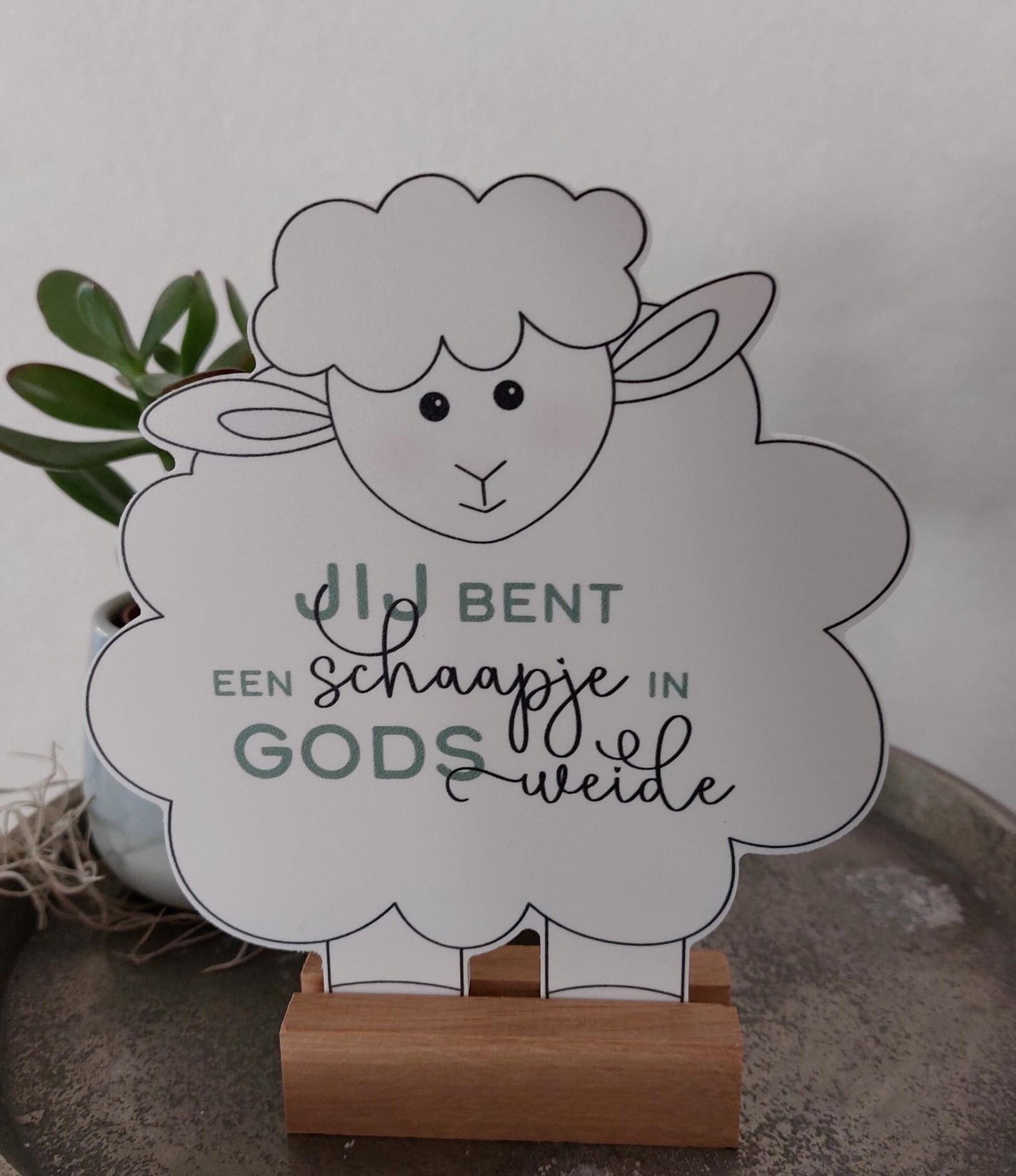 Geprint schaapje met mooie tekst. Dit schaapje wordt geleverd inclusief standaard. Een passend cadeau voor ieder moment!