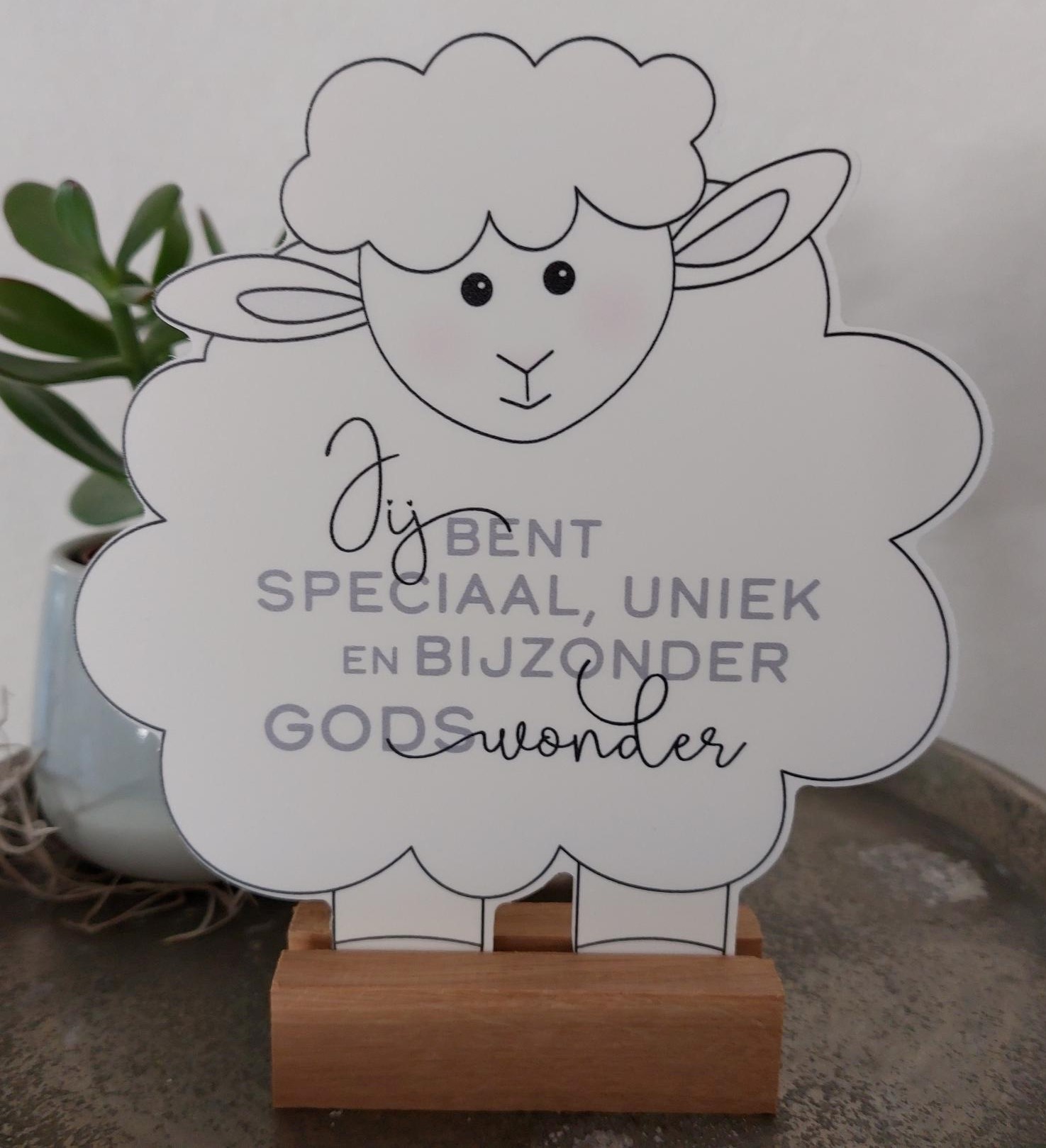 Geprint schaapje met mooie tekst. Dit schaapje wordt geleverd inclusief standaard. Een passend cadeau voor ieder moment!