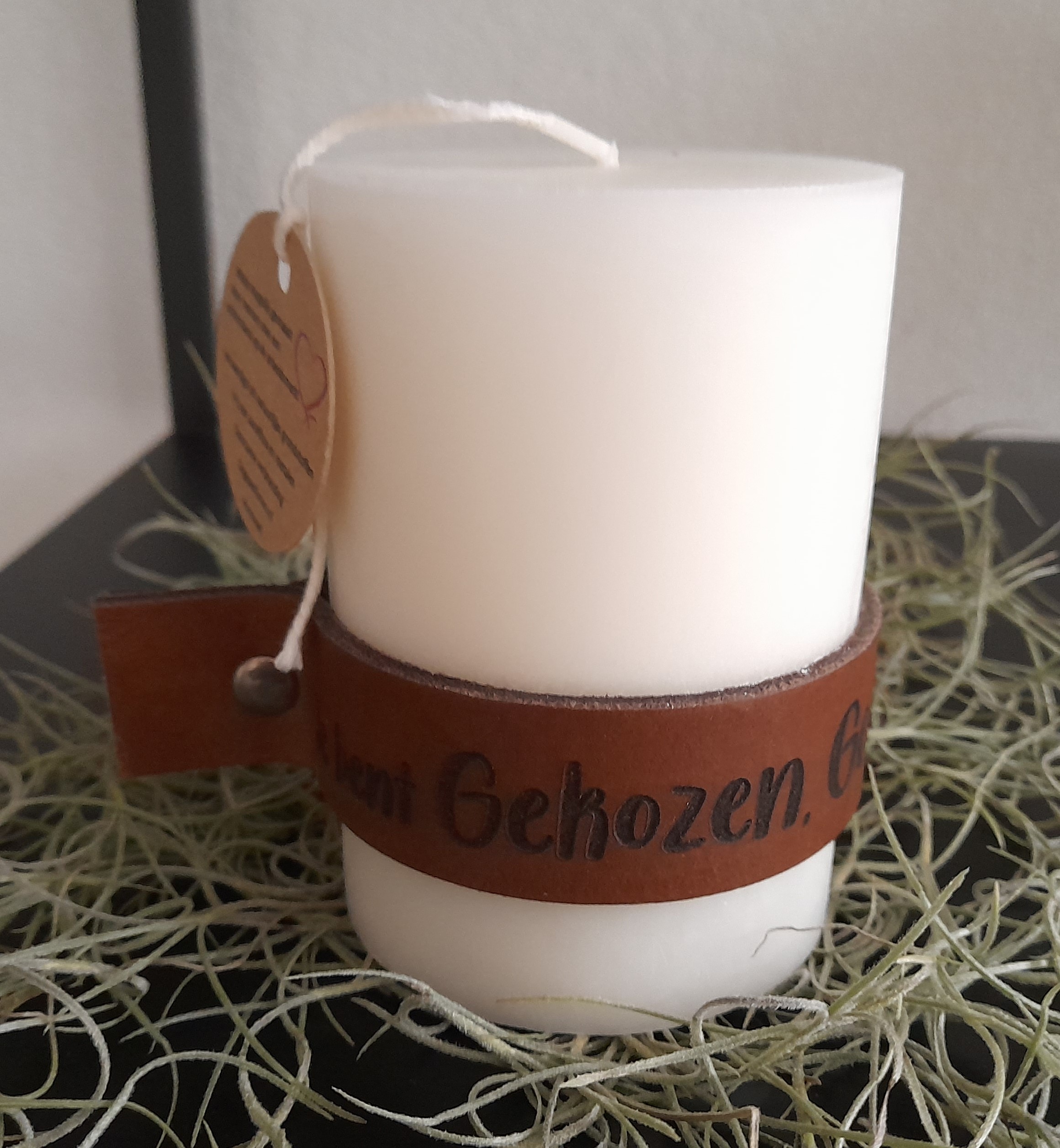 Hand gemaakt, Mede mogelijk gemaakt door mensen met een afstand tot de arbeidsmarkt, Vervaardigd uit natuurlijke grondstoffen, Vrij van parrafine en metalen, Duurzame verbranding, Ongeparfumeerd, Vormvast.