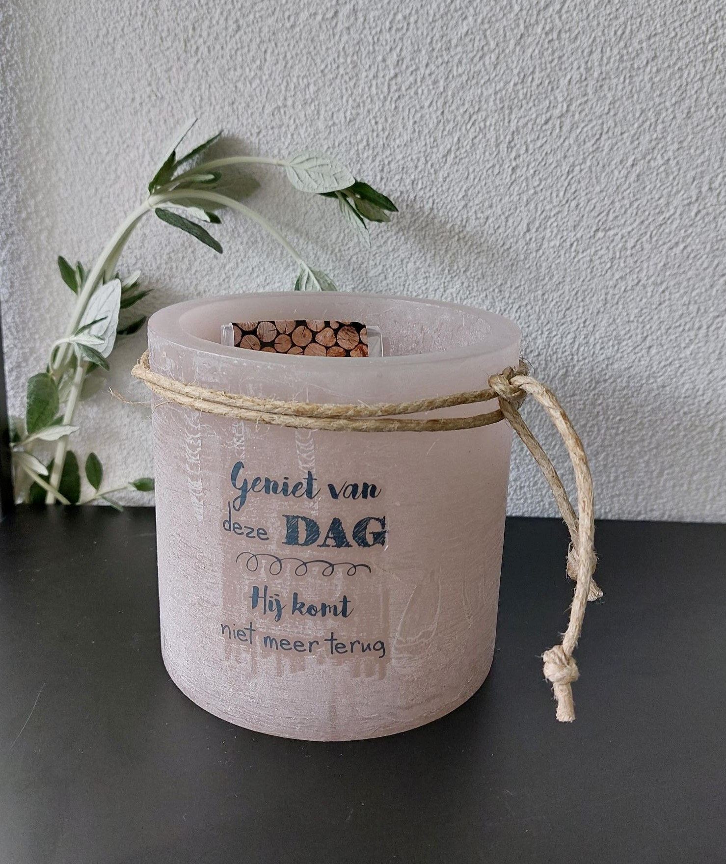 Windlicht M Geniet van deze dag, hij komt niet meer terug, Taupe