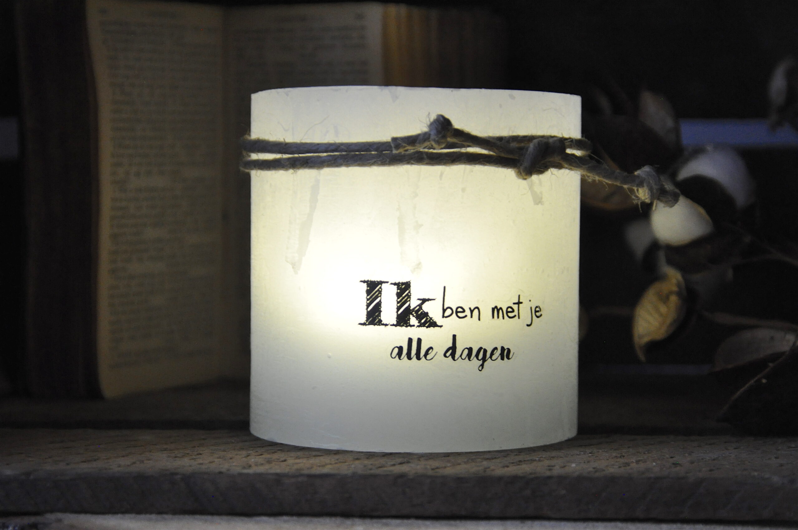 Windlicht S ‘Ik ben met je, alle dagen’, Blauw
