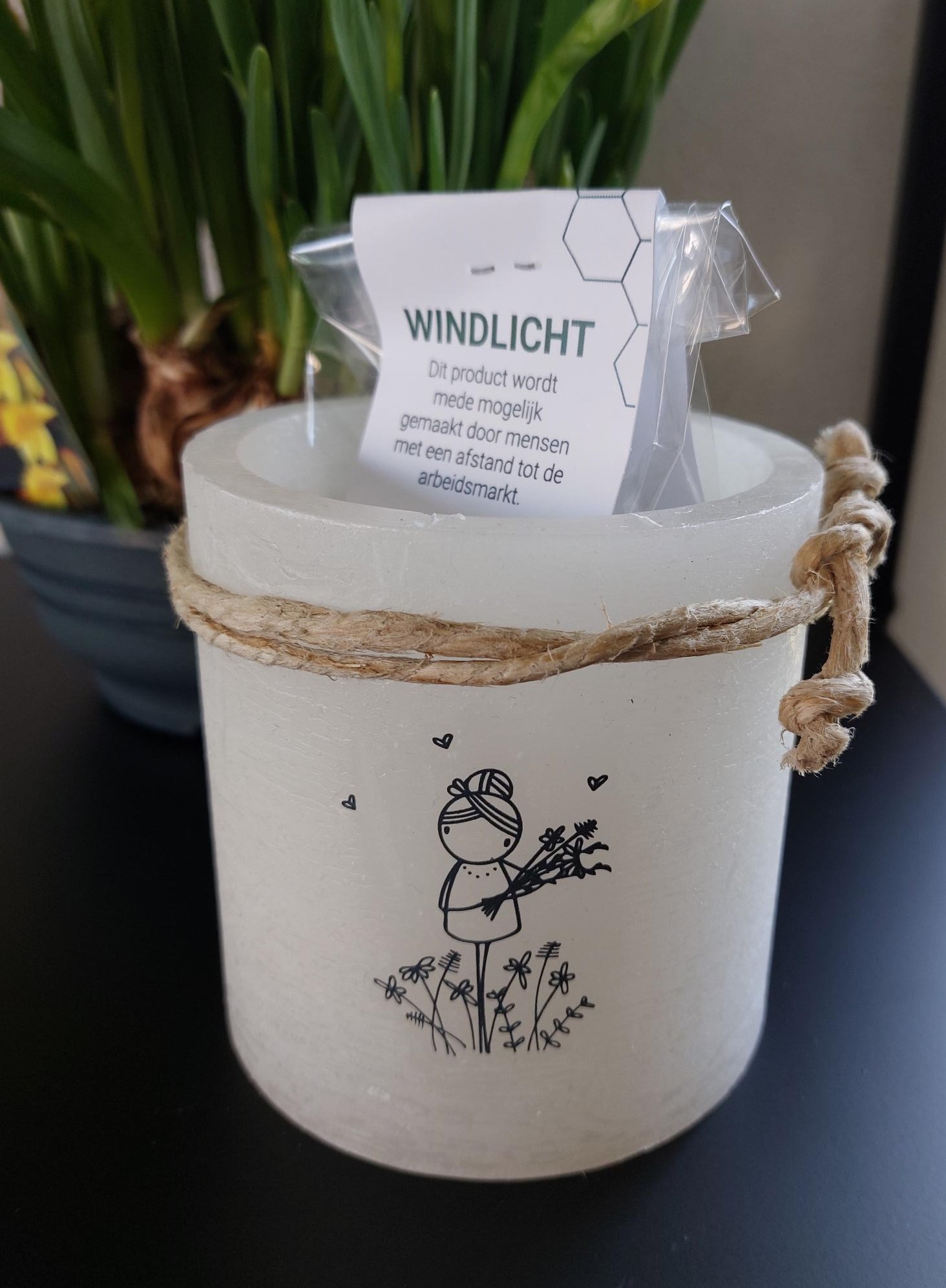 Sfeervol herbruikbaar windlicht met mooie illustratie van ontwerpster Irmadammekes.