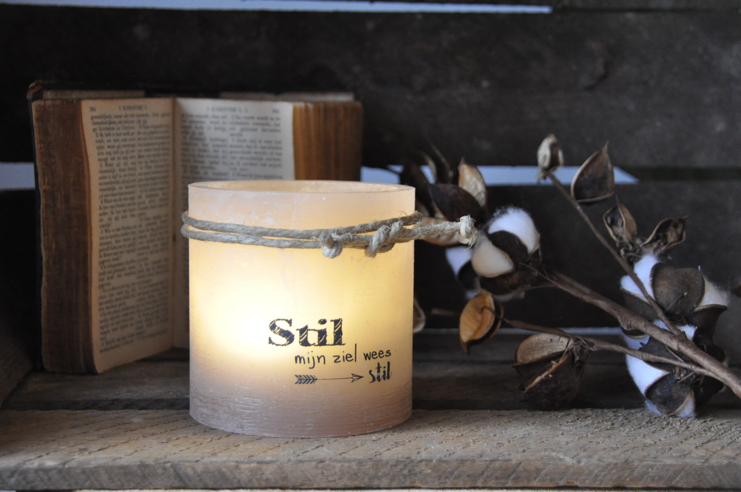 Windlicht S ‘Stil mijn ziel wees stil’, Taupe
