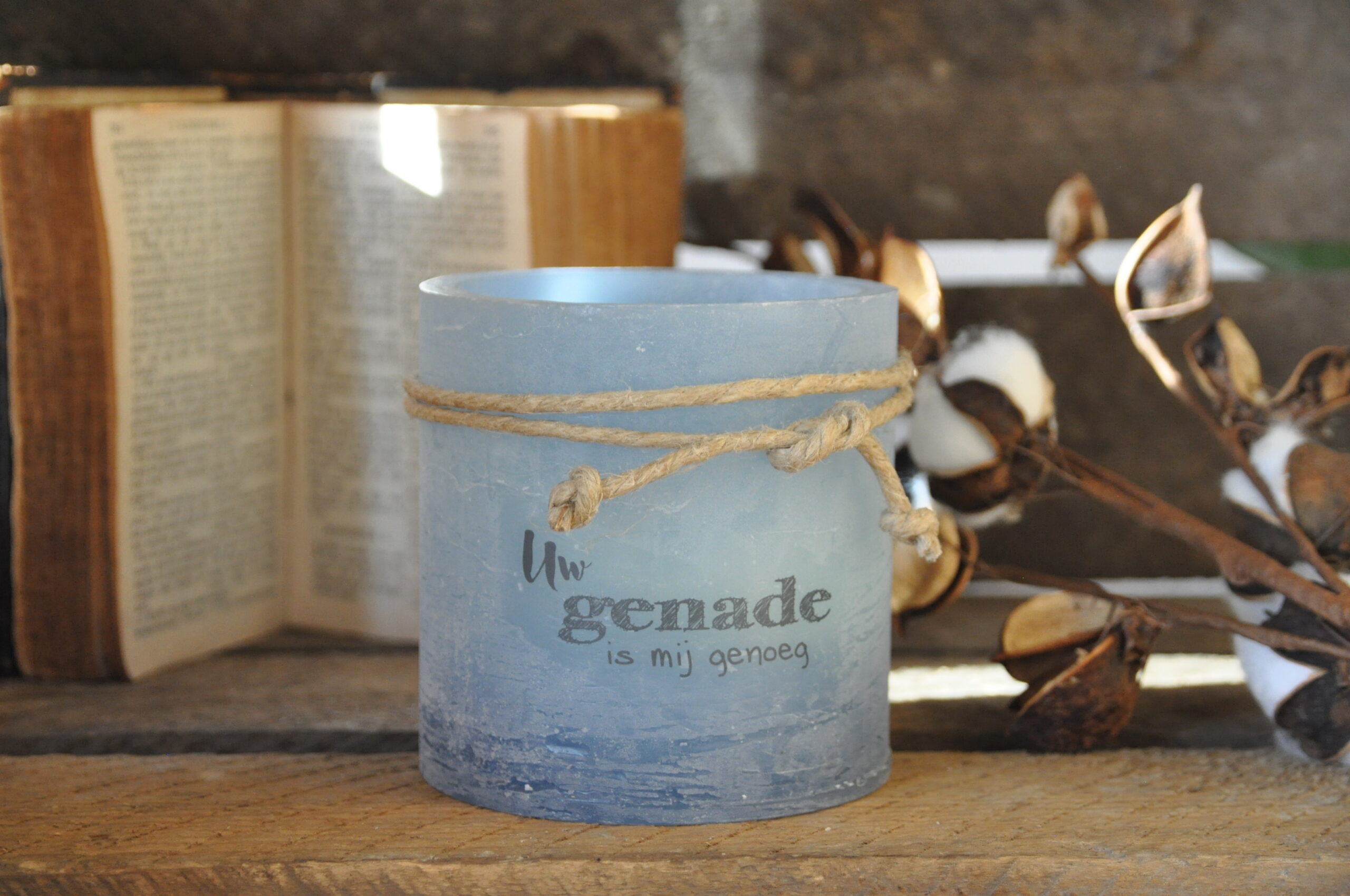 Windlicht S ‘Uw genade is mij genoeg’, Blauw
