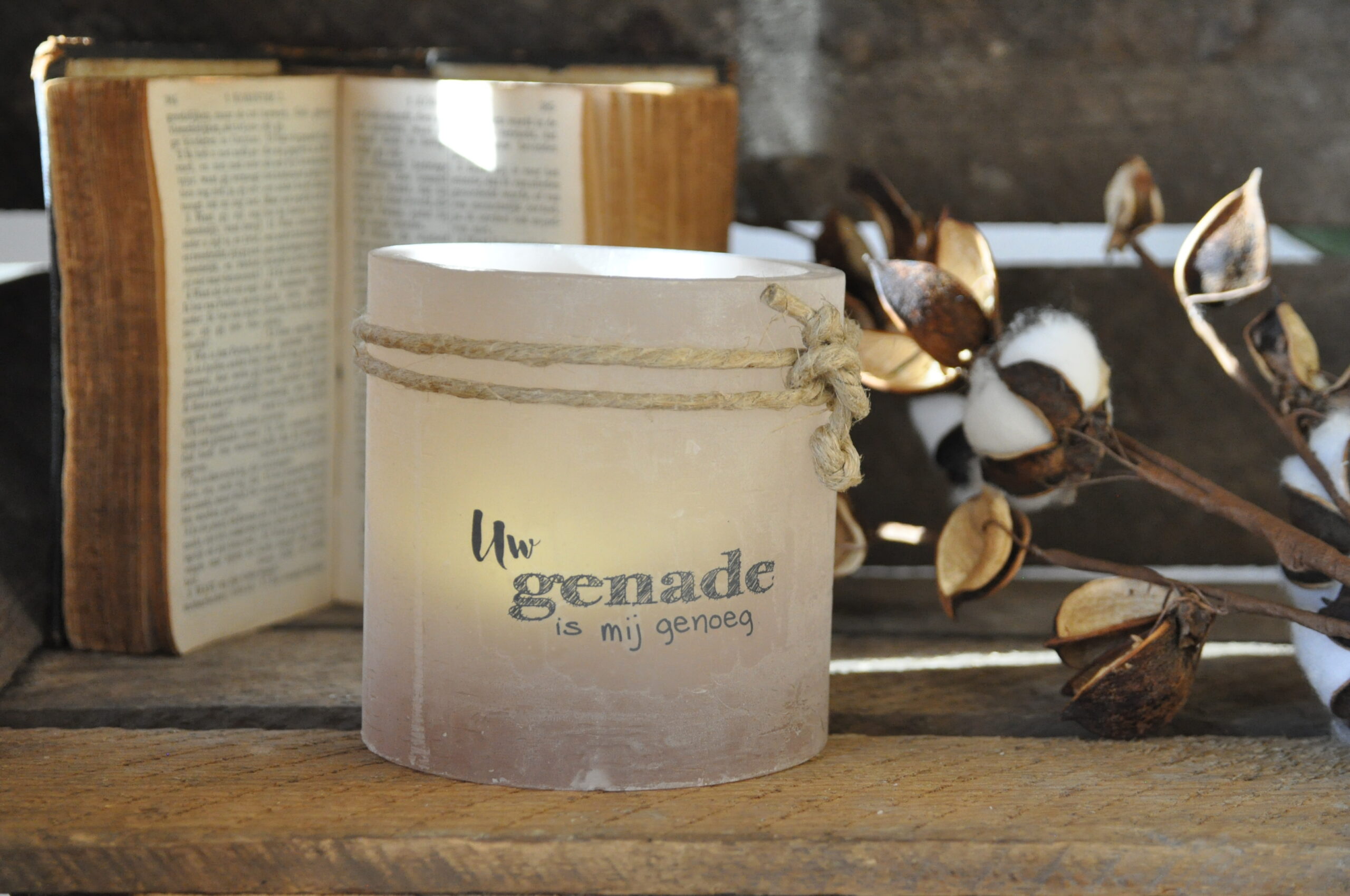 Windlicht S ‘Uw genade is mij genoeg’, Taupe